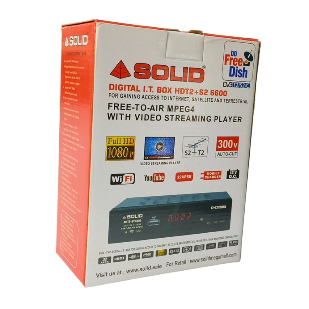 The cheapest price of SOLID HDT2+S2-6600 FreeToAir Satellite, Terrestrial, and Internet Video Streaming IT-Box is available on our website at Rs 1170.