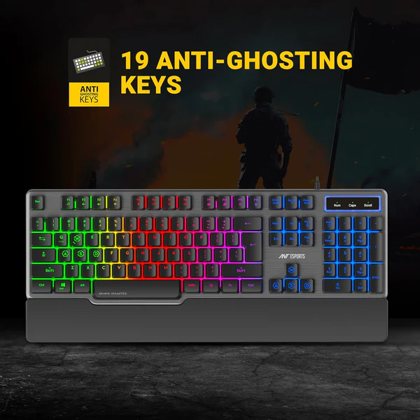 Upgrade your setup with the Ant Esports KM500 Pro Backlit Gaming Keyboard, designed for serious gamers who demand both style and performance. The membrane keyboard features 19 anti-ghosting keys, ensuring every keystroke registers accurately, even during intense gameplay.