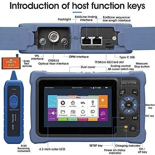 - Mini-Pro OTDR Test Wavelength 1310/1550nm,Test Range 5m~100km,Dynamic Range 26dB/24dB.