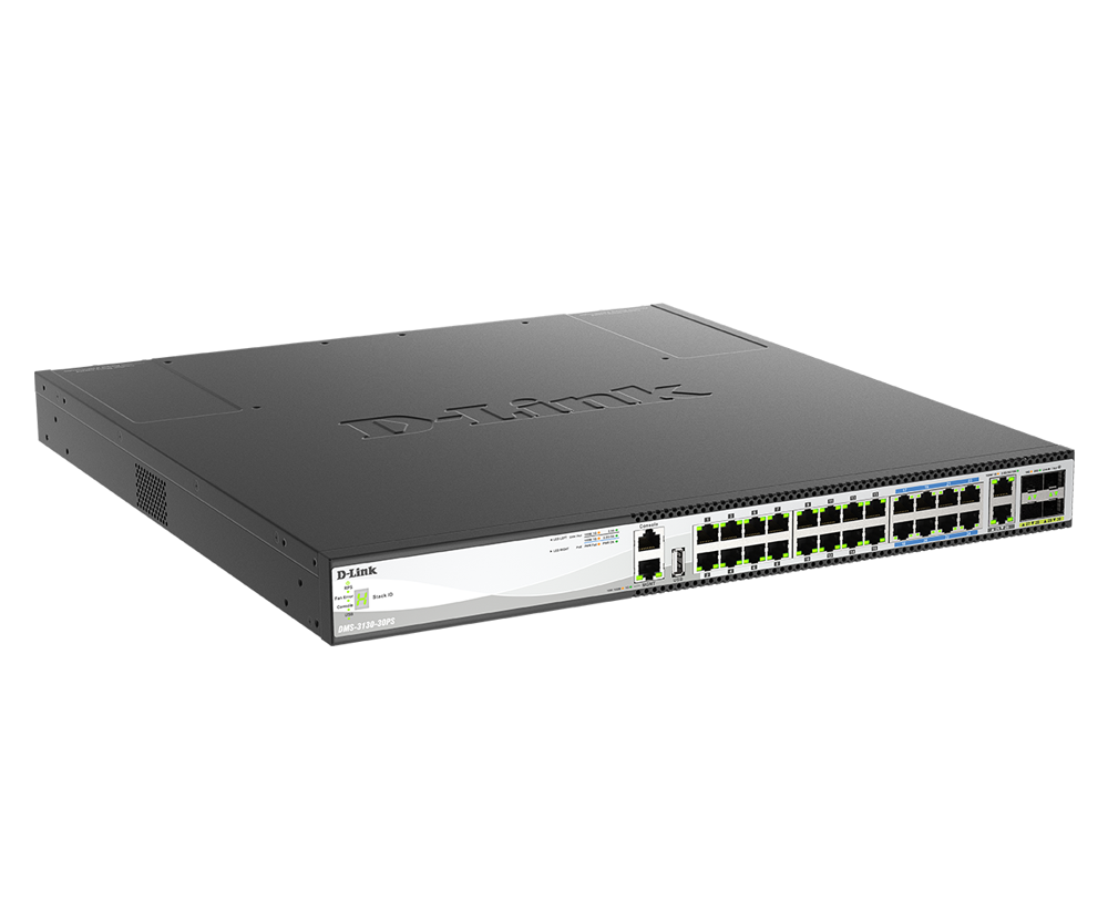 D-Link DMS-3130-30PS 30-Port Layer 3 Stackable Multi-Gigabit Managed PoE Switch