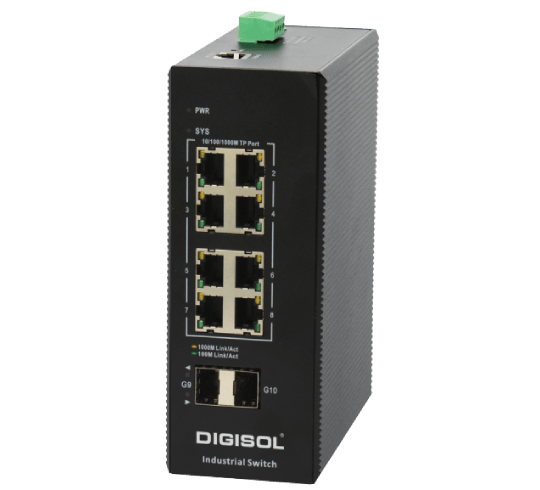 DIGISOL Managed Industrial Switch with 2 Gigabit SFP Ports and 8 Gigabit PoE Ports, PoE: 240W – DG-IS4510HPE