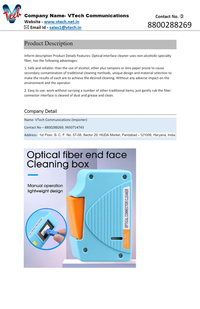 - 【Package Included】: 1 x Optic Cleaning Box,1xManual