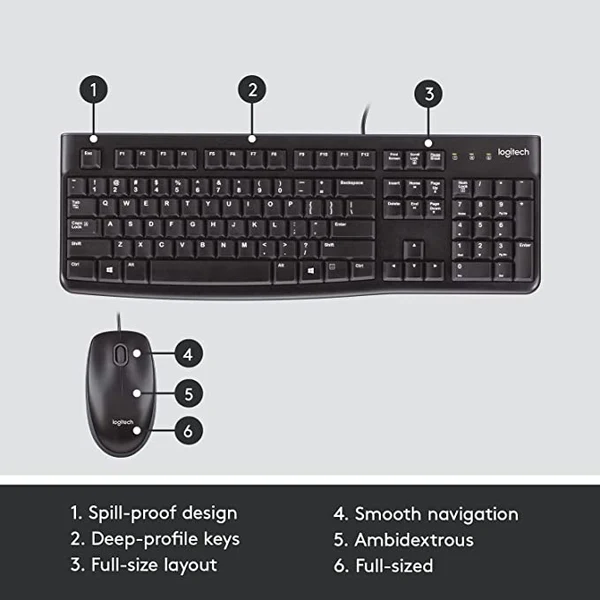 Logitech MK120 Wired Keyboard and Mouse Combo – Full-Size Wired Keyboard, Optical Mouse, USB Plug-and-Play, Spill-Resistant, Compatible with Windows
