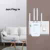 1200mbps wifi Range Extender connects to your Wi-Fi router wirelessly, strengthening and expanding its signal. Dual-band (5G +2.4G). Four External Antennas and set up with WPS Button.