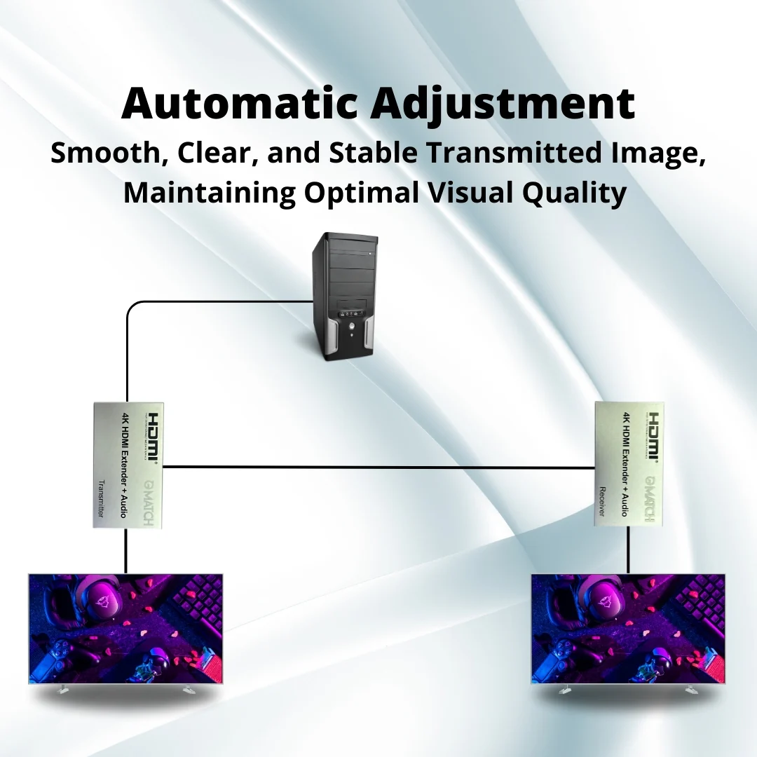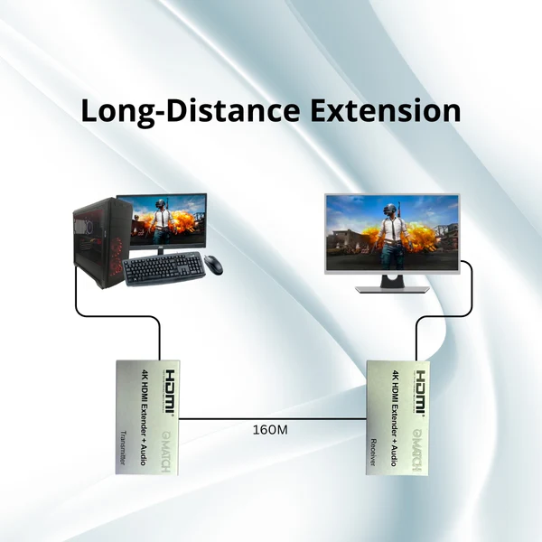 Upgrade your HDMI connectivity with the MATCH HDMI Extender 100 Meters, an advanced solution designed to extend HDMI signals over remarkable distances. Transmit high-quality HDMI video and audio up to 120 meters over a single CAT6 cable, providing flexibility and convenience for your setup. With support for resolutions up to 4K@30Hz, remote infrared control, and automatic adjustment features, this extender is a versatile solution for various applications.