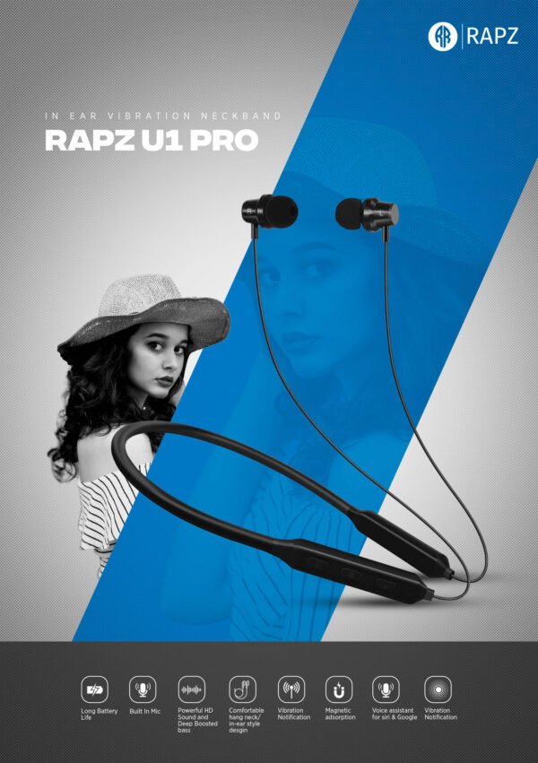Rapz U1 Pro Neckband comes loaded with features. With Mic feature fine-tuned acoustics with great bass technology with 10mm dynamic drivers to deliver an exceptional listening experience.