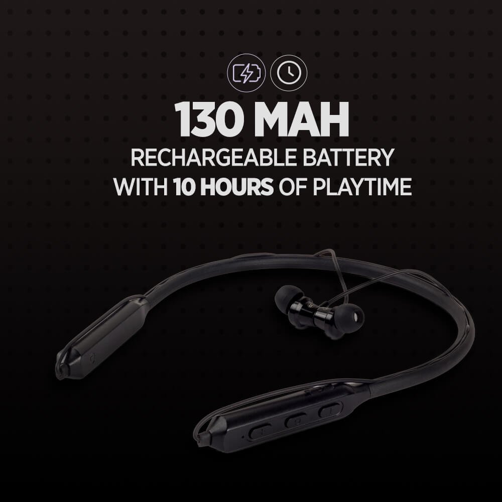 - Big Battery for unstoppable music time –This stylish Neckband comes with a 130 mAh battery power, which gives no less than 10 hours of incredible playtime.