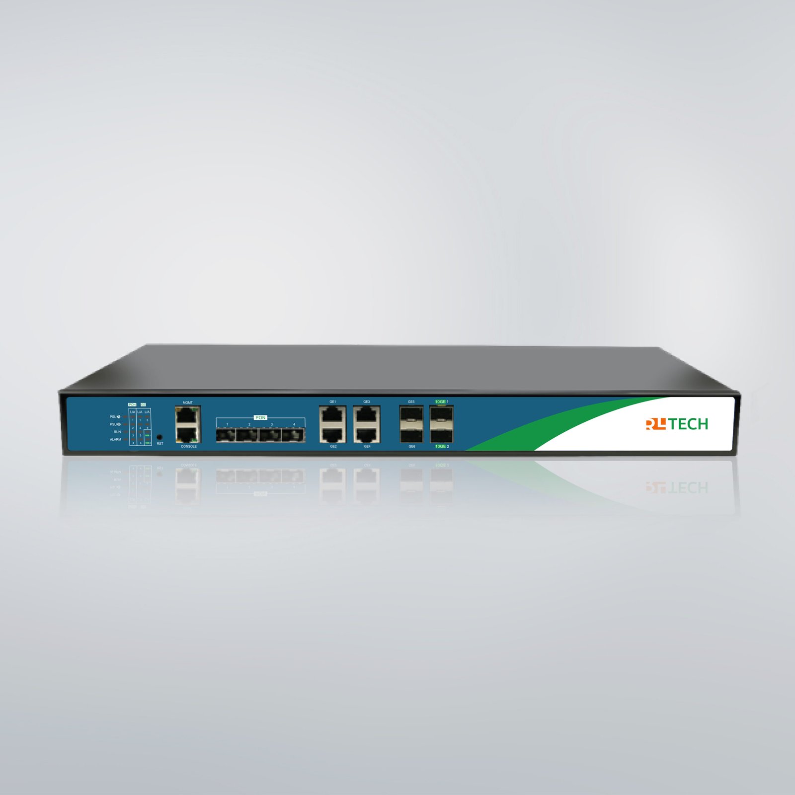 RL Tech RH8004EL OLT is a self-developed Compact 1U EPON OLT equipment, meeting the requirements of IEEE802.3ah and meets the EPON OLT equipment requirements of YD/T 1945-2006 Technical requirements for access network—based on Ethernet Passive Optical Network (EPON) and telecom EPON technical requirements 3.0, possessing super EPON access capacity,