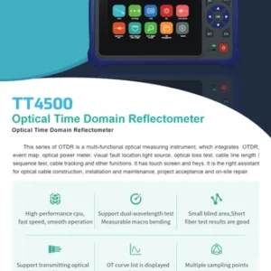 SOT Series OTDR is a full feature OTDR providing Built in Optical laser source, Optical power meter & Visual fault locator, based on a 7” multi-touchscreen.