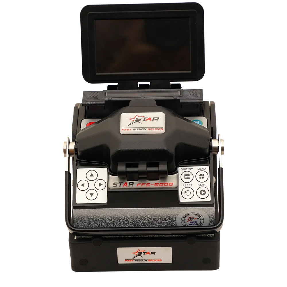 The FFS 9000 Fusion Splicer is designed and manufactured in India for the global market; it is the first Fusion Splicer manufactured in India. The machine is a fully automatic, small, light, and aesthetically pleasing optical fibre fusion splicer with high performance, high safety.