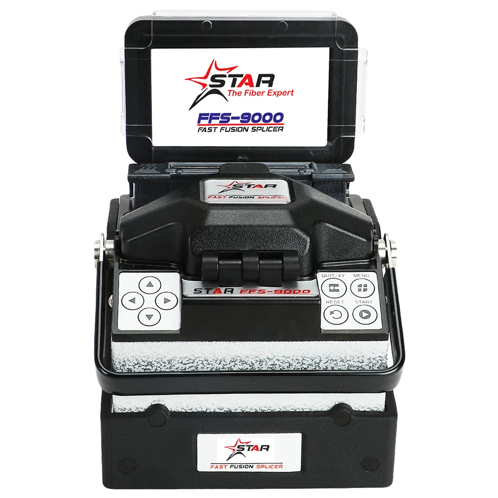 The Star FFS-9000 Optical Fiber Fusion Splicer is a top-notch fusion splicing machine specially developed with the capability of carrying out a precise splicing process of fusing two broken single micro strands of fiber optic cable ends. It has a double-core alignment structure, a higher success rate of fusion, and a lower loss. This machine has more features and capabilities, like more battery capacity and colorized LCD screen, etc. Therefore, we can see that the splicer is really outstanding in terms of features, such as its accurate micro-alignment function and long battery life, these are the core features and functionalities that clients and businesses are seeking.