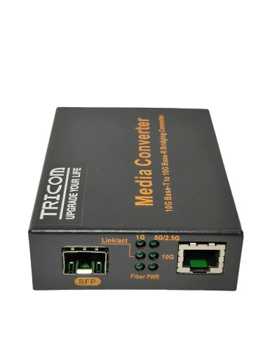 10G Base-T to 10G Base-R Media Converter supports two types media for network connectionsuch as 10GBase-T and 10GBase-FX. The bridge media converter is designed with a 10GbaseEthernet PHY chip that connects two types segments operation smoothly. This converter can beused as standalone unit or as slide-in module to the 19” converter rack Chassis for use at a centralwiring closet.Feature1.Support Jumbo Frame2.Transparent Transport and very low delay3.Support ITUT prescribed DWDM/CWDM wavelength4.Support DMI function for SFP+ fiber module5.Support Loopback test function6.Economic In-band Management function7.Powerful Network Management function (Web, SNMP, Console)8.Support hot plugging9.Support 2U Rack (16 channel)and standalone use10.Full State Led display11.Easy installation12.UTP cable length detection(only RJ45 interface)