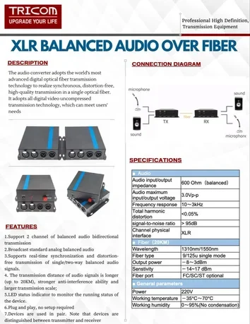 These professionally designed devices are typically used in applications for Staging, Parks, Broadcast, Studio Audio and professional AV applications, etc. Use SC UPC / PC connectors with SM and MM fiber optic cables.