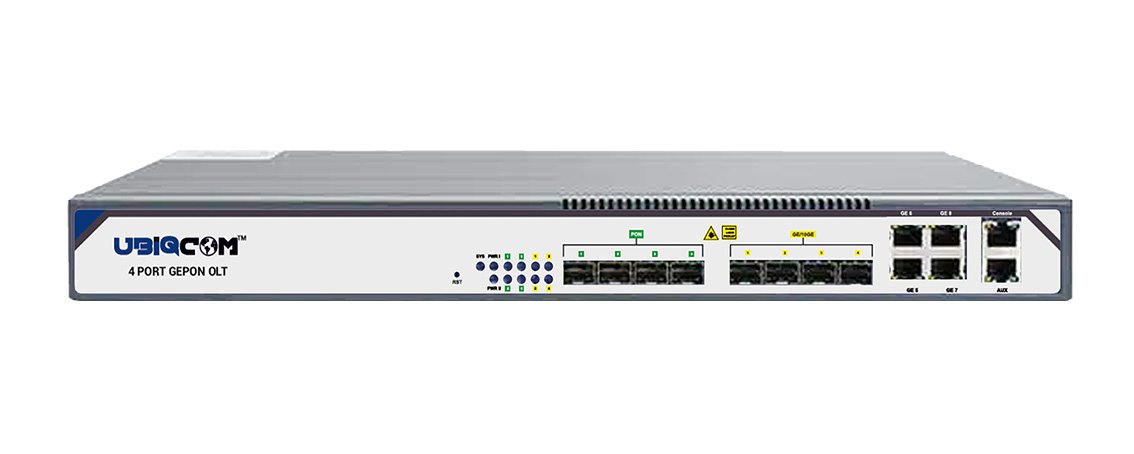 UB5004 EL provides 1 USB port, 4GE and 4 SFP slots interface for uplink, and 4 EPON ports for downstream. It can support 256 ONU under 1:64 splitter ratio..