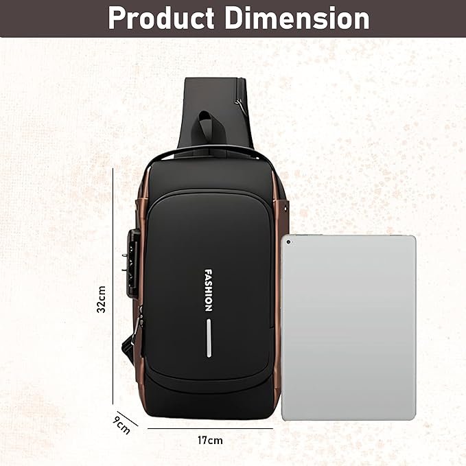 Upgrade your daily carry with this Waterproof Crossbody Sling Bag – perfect for travel, office, or casual use. Designed with multiple compartments, it securely holds your tablet, phone, wallet, keys, and travel essentials. The anti-theft password lock ensures your valuables stay safe, while the adjustable strap provides comfortable wear for men and women. Its durable polyester material makes it lightweight, stylish, and long-lasting. The USB port feature allows on-the-go charging for your devices. Ideal for commuters, travelers, and anyone seeking practical, secure, and stylish storage.