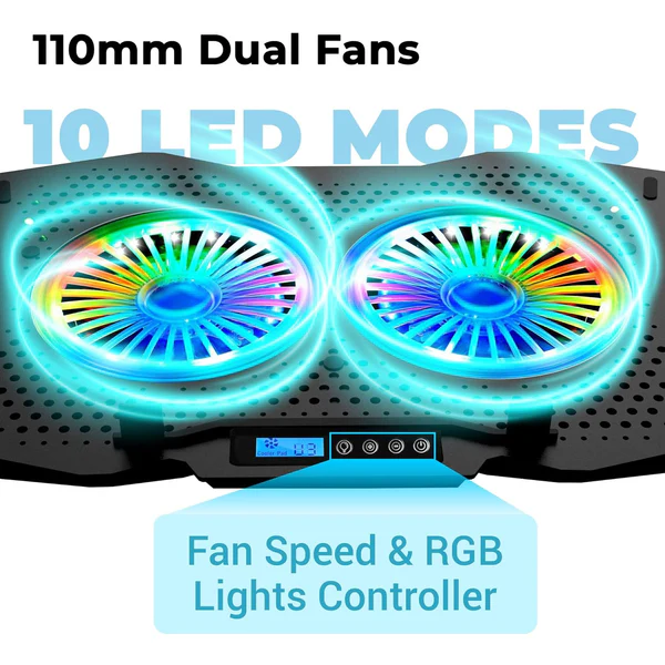ZEBRONICS ZEB-NC9000 Laptop Cooling Pad – Black | Dual-Fan, 1200 RPM, Adjustable Table Use